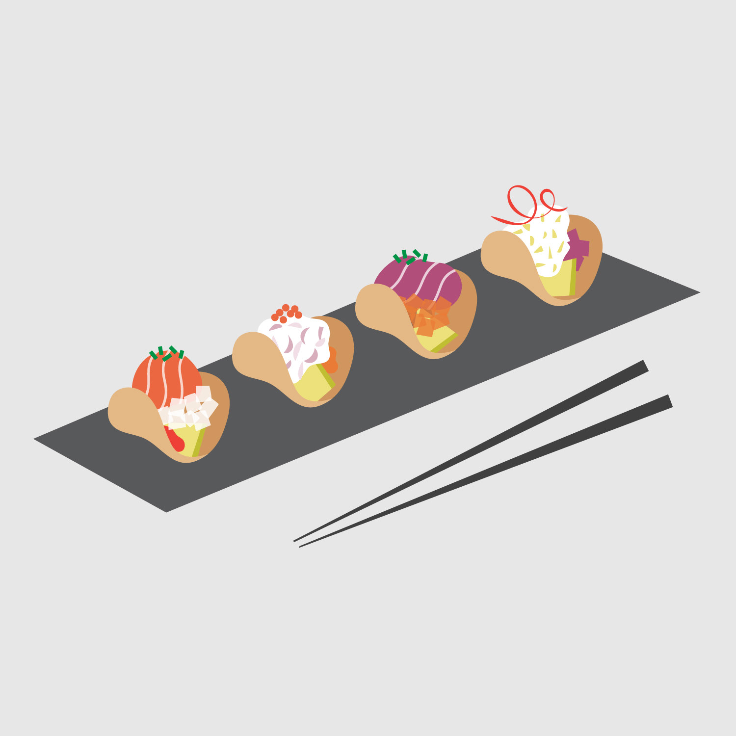 Illustrations of food created for various promotional projects.