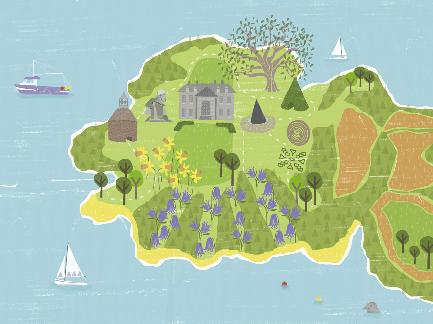 An illustrated map of the National Trust’s Antony House and gardens in Cornwall.